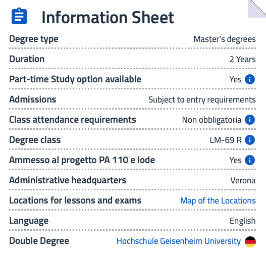 The inter-University (Padua, Verona and Udine) Master’s in Viticulture, Enology and Marketing is part of the international EMaVE-Vinifera Consortium. With its partners (SupAgro Montpellier, France; Hochschule Geisenheim University, Geisenheim, Germany; Universidad Politecnica de Madrid, Spain; Universidade Politecnica in Lisbon, Portugal, and the Universities of Turin, Milan, Palermo, Sassari, and Foggia in Italy), it awards the European Master in Viticulture and Oenology. In the first year lessons are held in English at the University of Montpellier. In the second year, students complete their preparation at one of the other partner universities.