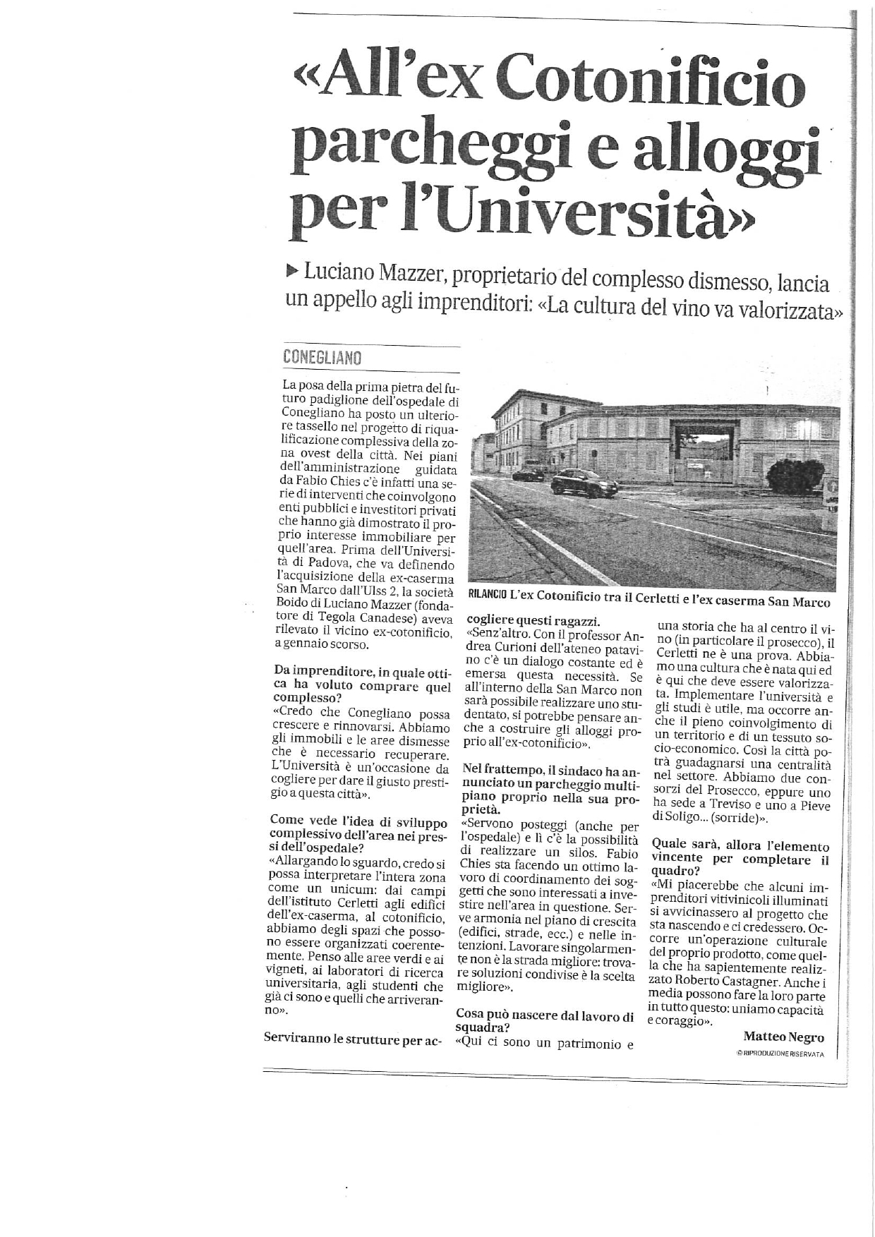 Articolo di Matteo Negro da il Gazzettino di Treviso del 3 settembre 2023-pagina XVI