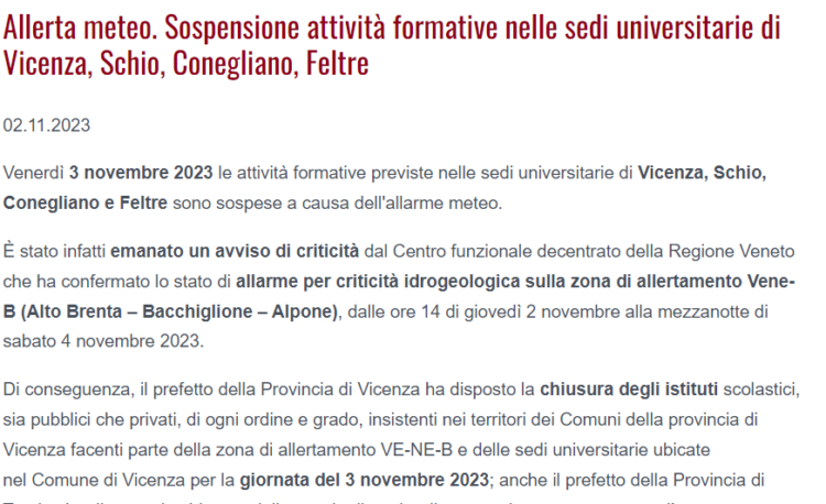 Riportiamo dal sito ufficiale www.unipd.it